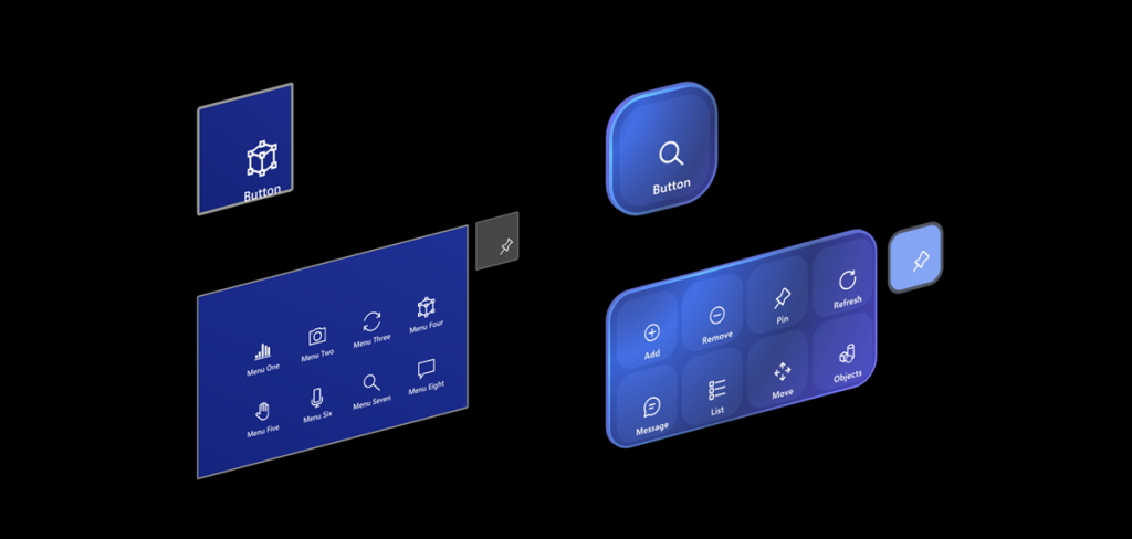 MRDL was first showcased in Microsoft Mesh, where virtual presence, shared environments, and productivity tools required a higher information density and behavioral fidelity than previous MR applications. It was later formalized and made broadly available to developers through MRTK3 UX components, giving Unity developers access to the same spatial UI system used in Microsoft’s own products.