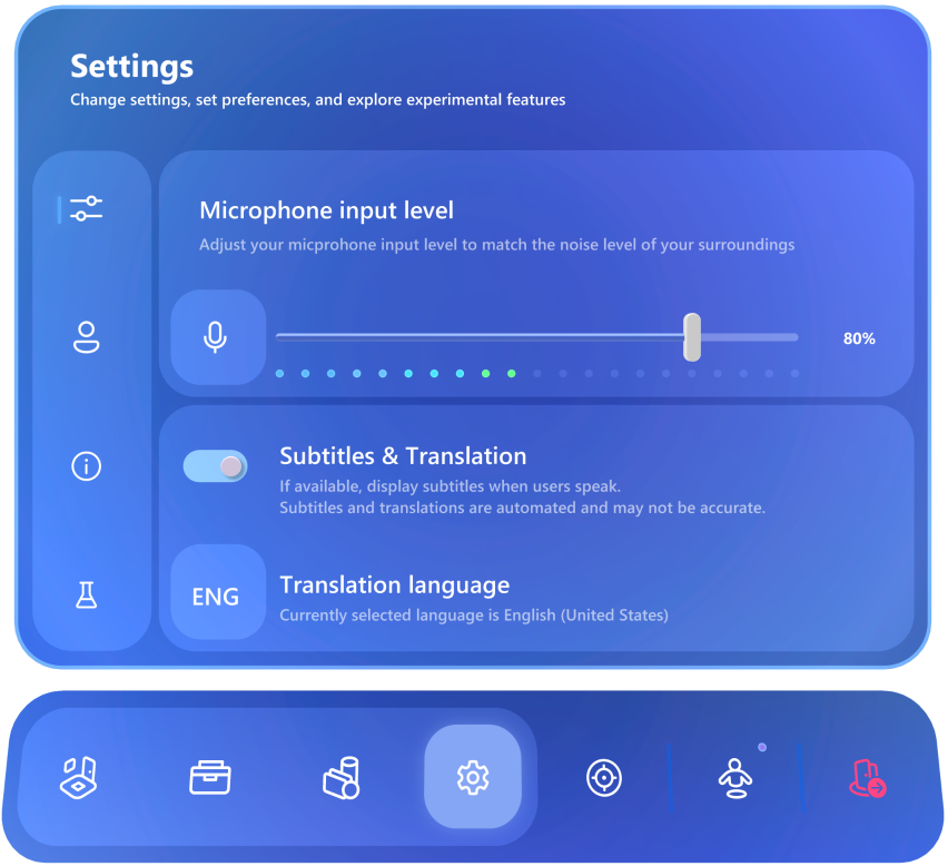 Updated Fluent icons and tuned scales improve information density and clarity within spatial UIs.